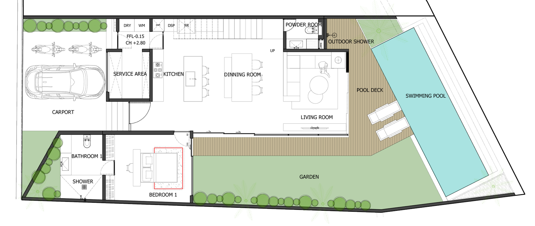 In the heart of South Bali, the location offers a perfect blend of tranquillity, serenity and modern amenities. Surrounded by lush rice fields, picturesque landscapes and stunning beaches, this area is a dream come true for those looking to indulge in the quintessential Island experience. You will be greeted by paddy fields, traditional Balinese homes, and the gentle hum of a slow-paced village lifestyle.